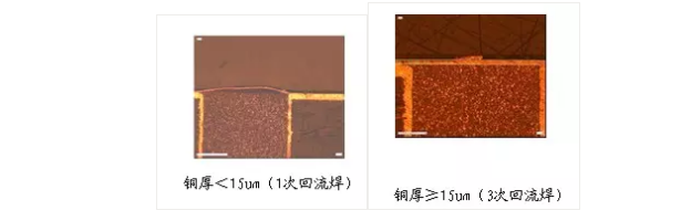 D、對(duì)于樹(shù)脂與銅分層的問(wèn)題,我們發(fā)現(xiàn)孔表面的銅厚厚度大于15um時(shí),此類樹(shù)脂與銅分層的問(wèn)題可以得到極大的改善。(如下圖)