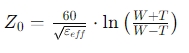 特性阻抗(Z0)由傳輸線的物理結(jié)構(gòu)(如寬度、厚度、介電常數(shù)等)決定,其計算公式根據(jù)不同類型的傳輸線而異。例如,微帶線的特性阻抗計算公式為: