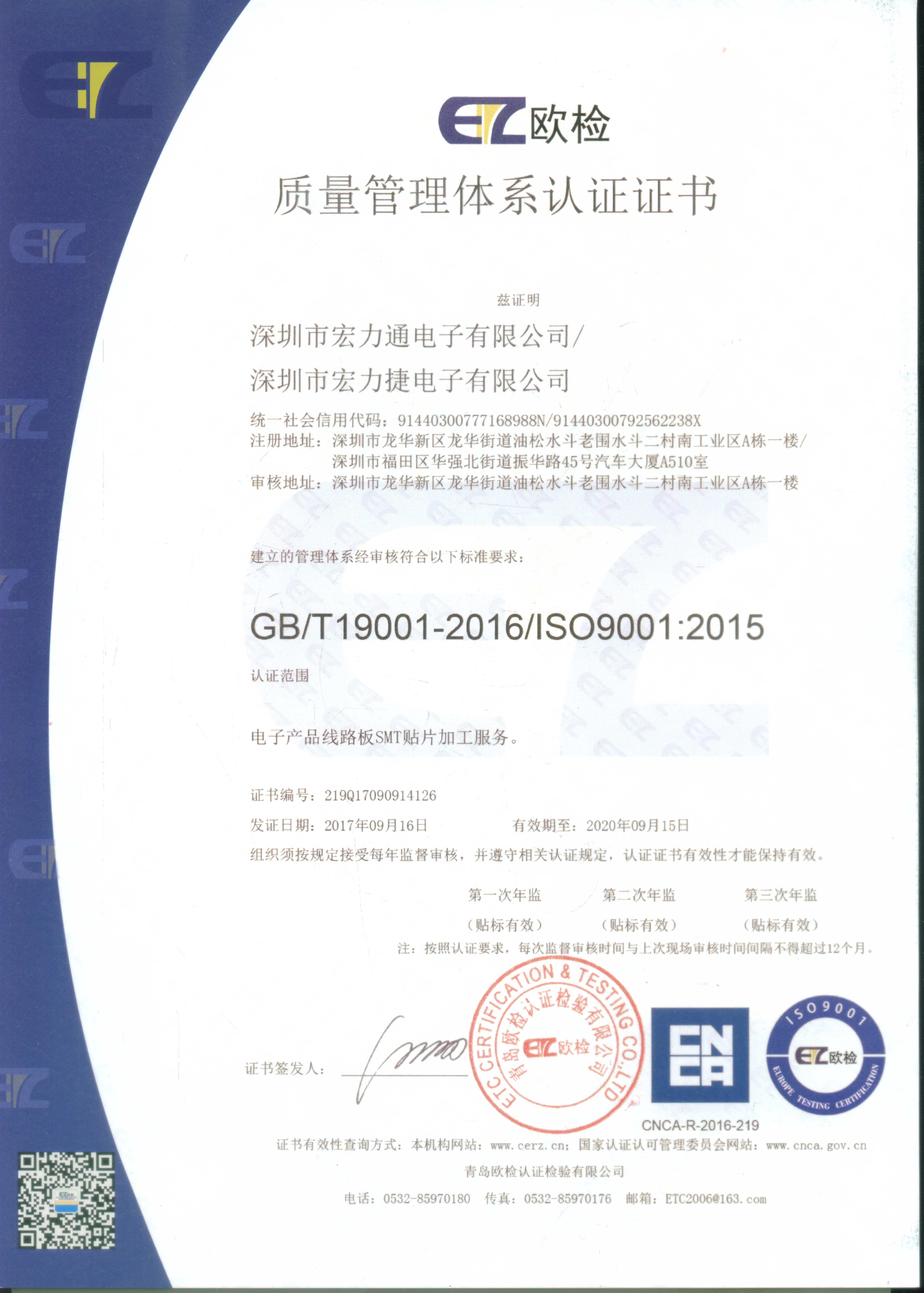 ISO9001:2015證書